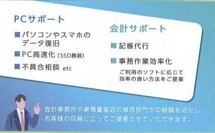 2023年11月2日 / 最終更新日時 : 2023年11月18日 ocean0629 PC診断 お仕事 LINEでお問い合わせ 投稿者プロフィール ocean0629 最新の投稿 未分類2024年10月22日テレビ電話でパソコンを直す お仕事2024年9月30日youtubeチャンネル作成 お仕事2023年12月11日記帳代行 会計分野等2023年11月29日開業届・青色申告承認申請書 Bluesky コメントを残す コメントをキャンセルメールアドレスが公開されることはありません。 ※ が付いている欄は必須項目ですコメント ※ 名前 ※ メール ※ サイト 次回のコメントで使用するためブラウザーに自分の名前、メールアドレス、サイトを保存する。 Δ